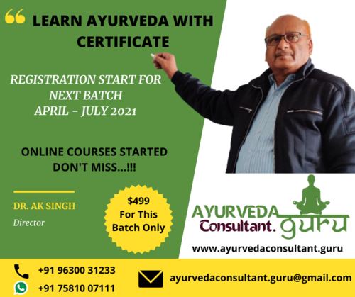 Get online ayurvedic consultation from specialist ayurvedic doctor AK Singh he is best Ayurveda Consultant and offering online Ayurveda certification course, live online classes and training programs.