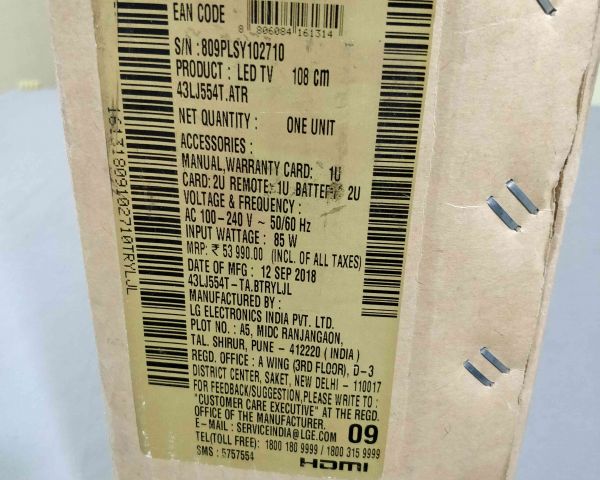 Similar ads to "Brand New LG 43 Inch LED HD Smart Tv Wholesale 43LJ554T, Bangalore"