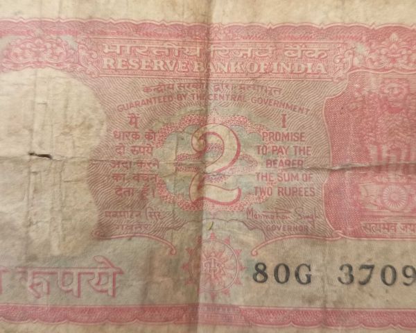 Old 2 Rupees Indian currency signed by former PM Mr. Manmohan Singh for sale